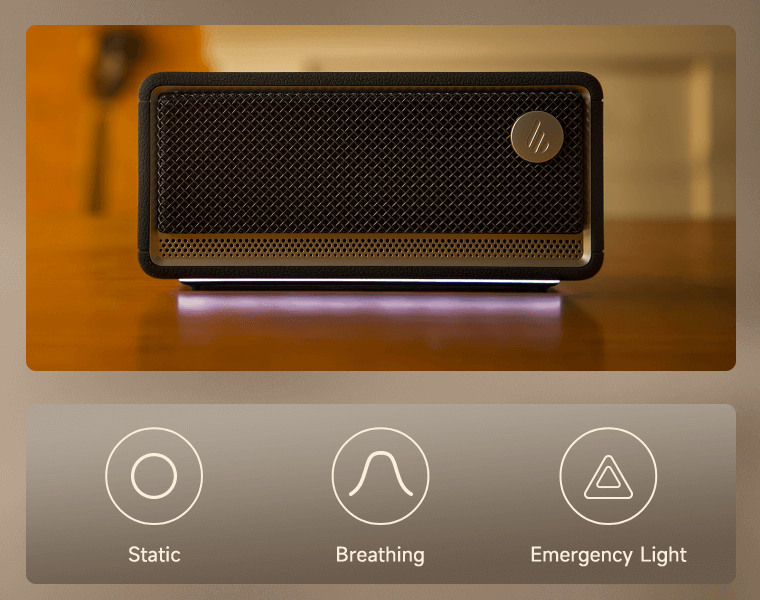 The integrated ambient light offers 3 preset effects and 2 color options, perfect for creating a cozy, peaceful atmosphere whether at home or on a camping trip.