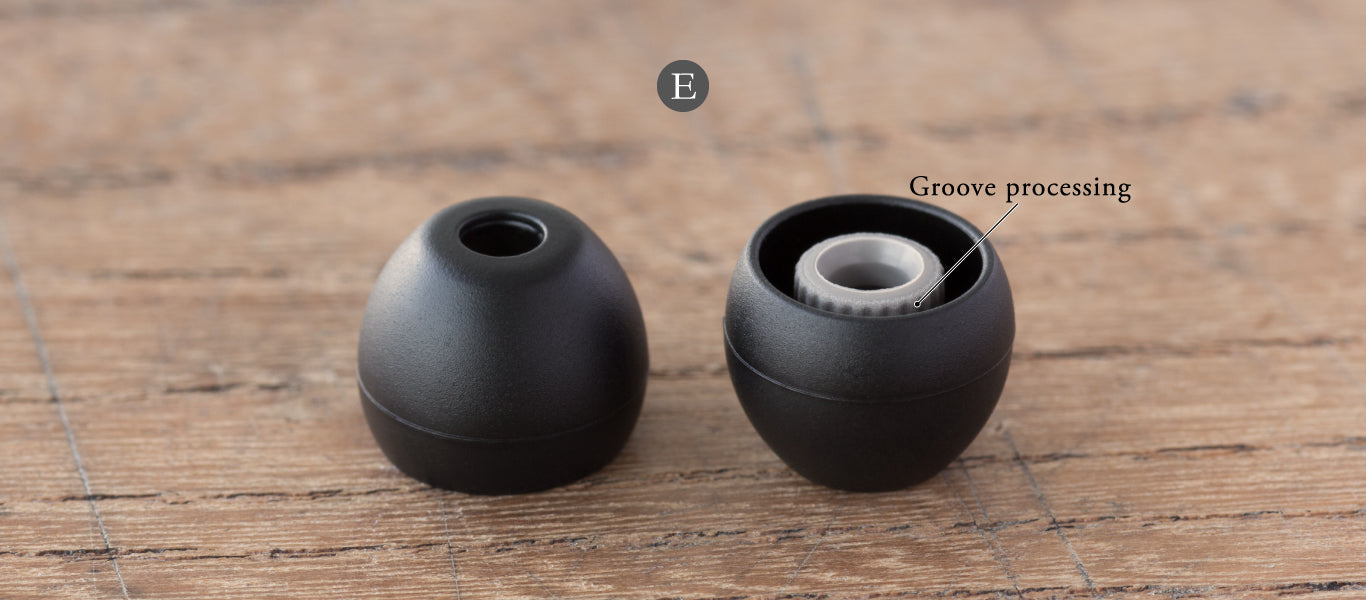 Two types of silicon differing in rigidity are employed for the sound conduit and for the earbud that comes into contact with the user’s ear. The silicon used for the sound conduit is more rigid than that used for the earbud, and by having groove processing applied to it, combines both strength and flexibility. Soft silicon has been employed for the earbud, making for a comfortable fit and a high level of sound insulation.