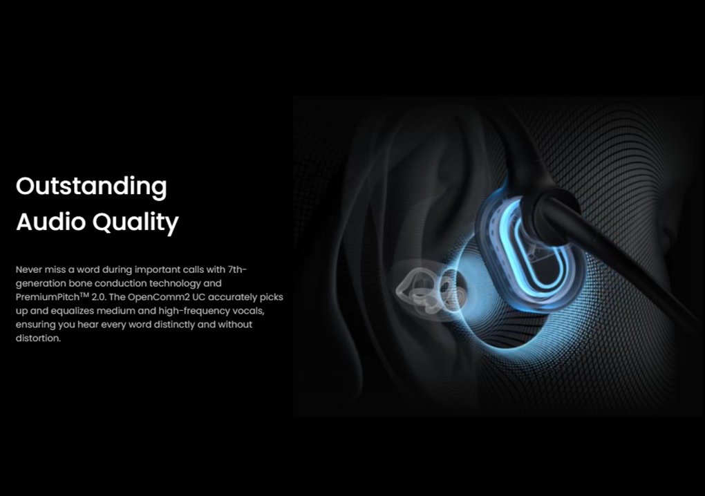 The OpenComm2 UC brings you an advanced open-ear design for superb, all-day comfort, and sustained situational awareness.7th generation bone conduction technology ensures crystal-clear audio while an adjustable, dual noise-canceling microphone delivers...