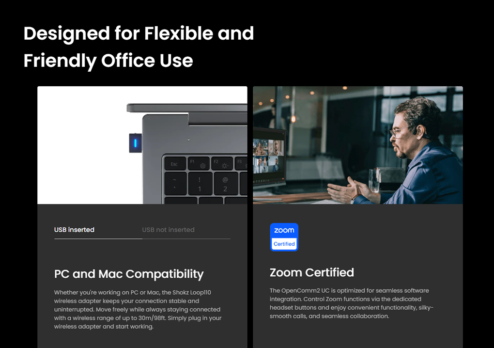 And with the Shokz Loop110 wireless adapter, you will always be connected to your devices, whether you use a Mac or a PC, in the office or at home.